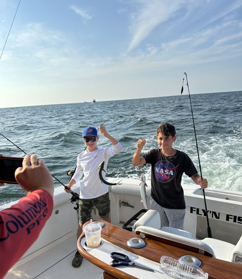 Start your Virginia Beach adventure in comfort and style aboard Fly’n Fish Sportfishing. Our vessel is a 43’ Cabo Flybridge Sportfisher. We offer a premium product which includes a well-appointed interior and top-of-the-line fishing gear in a spacious fishing cockpit. Captains Jake and Jim have been fishing the waters off Virginia Beach for over 25 years and love to share their passion for fishing with all our customers.