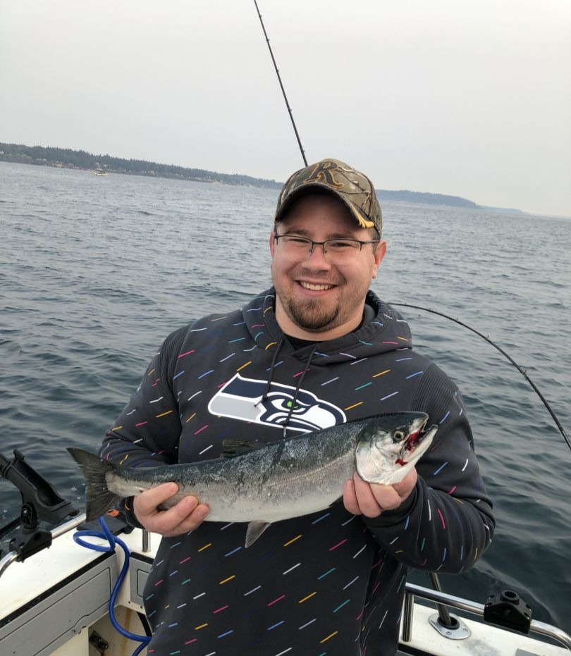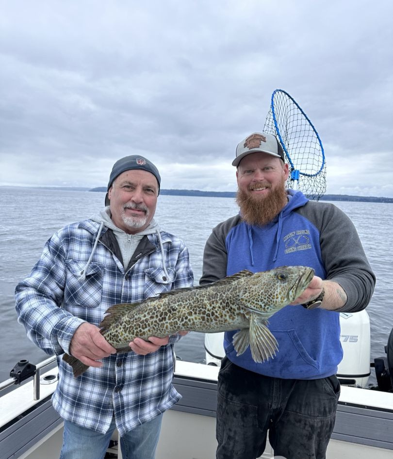 You’ll be fishing from a 25’ Defiance San Juan sport fisher, built locally, designed for fishing the Puget Sound. The boat is versatile and equipped with state-of-the-art features and technology. She comes with the latest Raymarine electronics and safety equipment, downriggers, and a live bait tank for Lingcod. You’ll also have a private toilet, fridge, and ample space for 4 people to fish at the same time. Capt. Mathew welcomes children ages 5 and up, and he’s got kids’ sized life vests for them as well.
