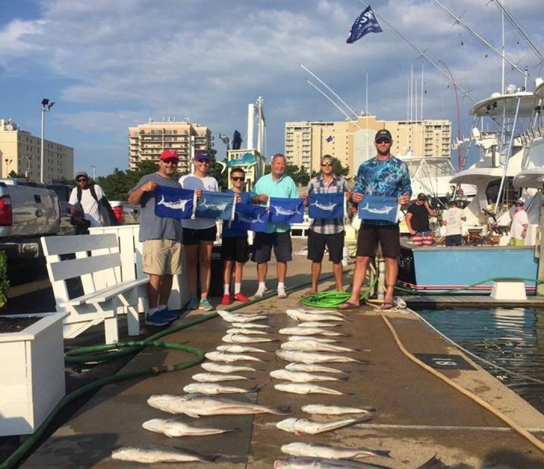 Top Notch Charters has a new 58’ Sportfisherman built in 2023. The boat is equipped with 3 a/c units, large salon and two large outside raised couches set in the shade. Go in First Class style and comfort aboard the largest charter boat in Virginia Beach.